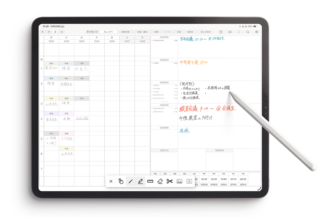 現場の流れに沿った直感的な操作で、予定管理から授業準備までをスムーズに。