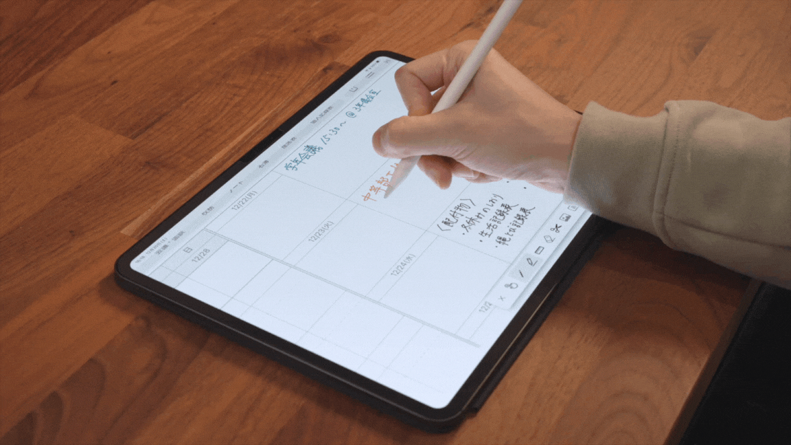 Apple Pencilなどのスタイラスを使用して手書きで使用するため、今までの紙の手帳に近い感覚のままデジタルの利便性を追加することができます。
