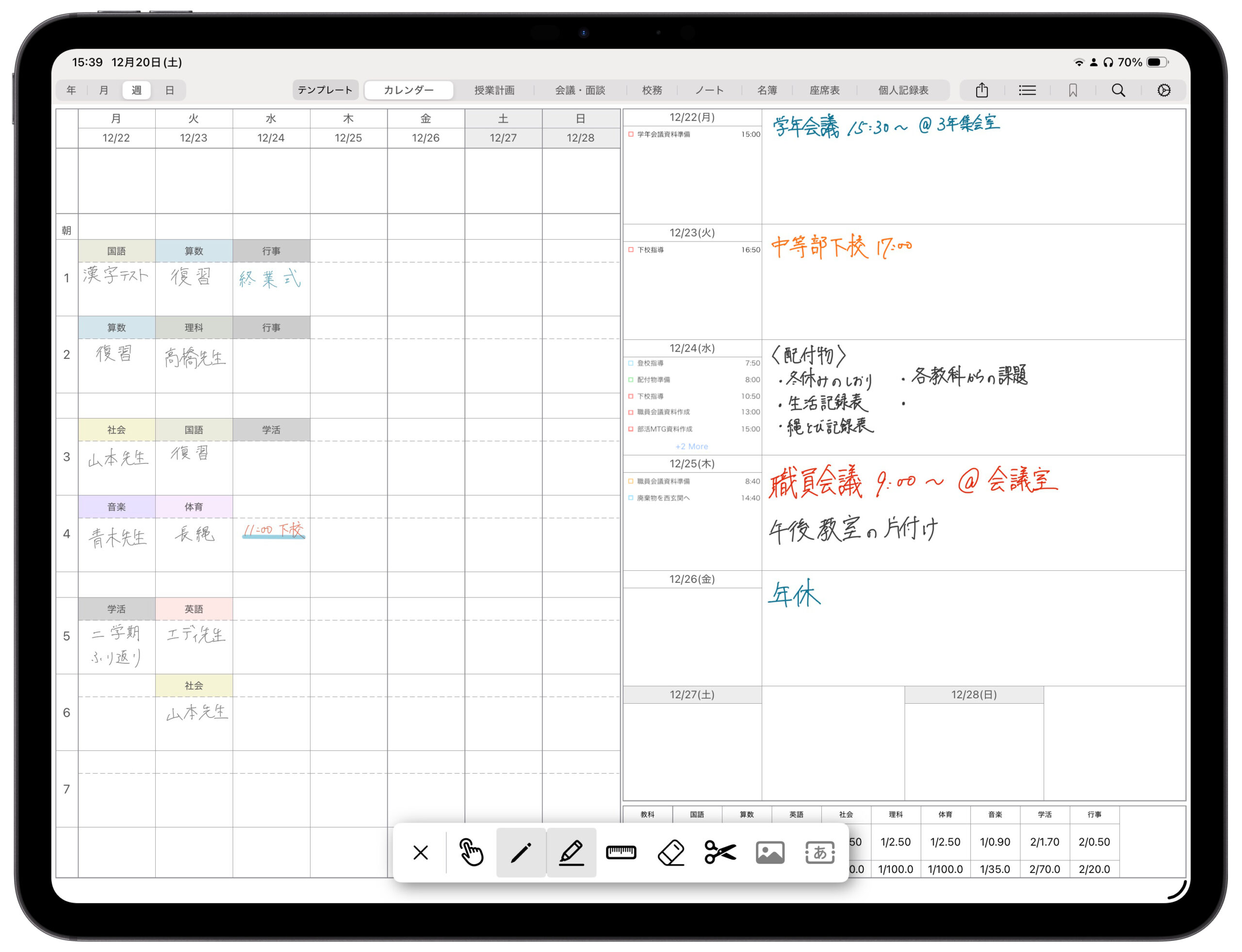 週案だけでなく、授業計画や名簿などの