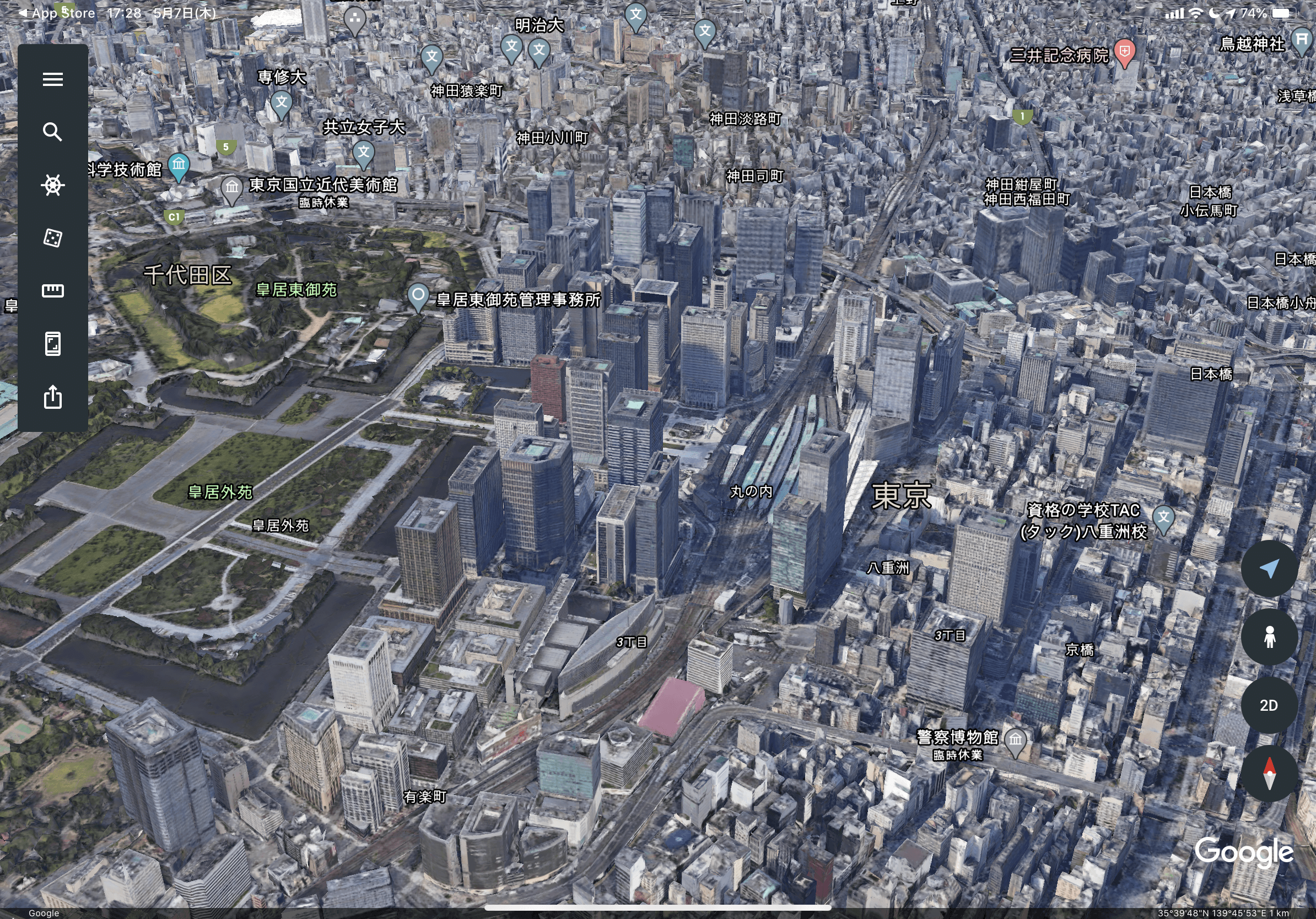 3D地図アプリ:Google Earth