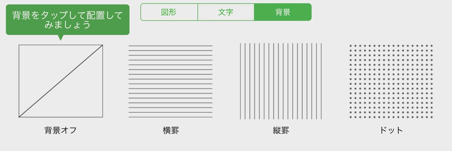 罫線の投影以外にも、図形や画像の表示、文字の表示ができるアプリです。