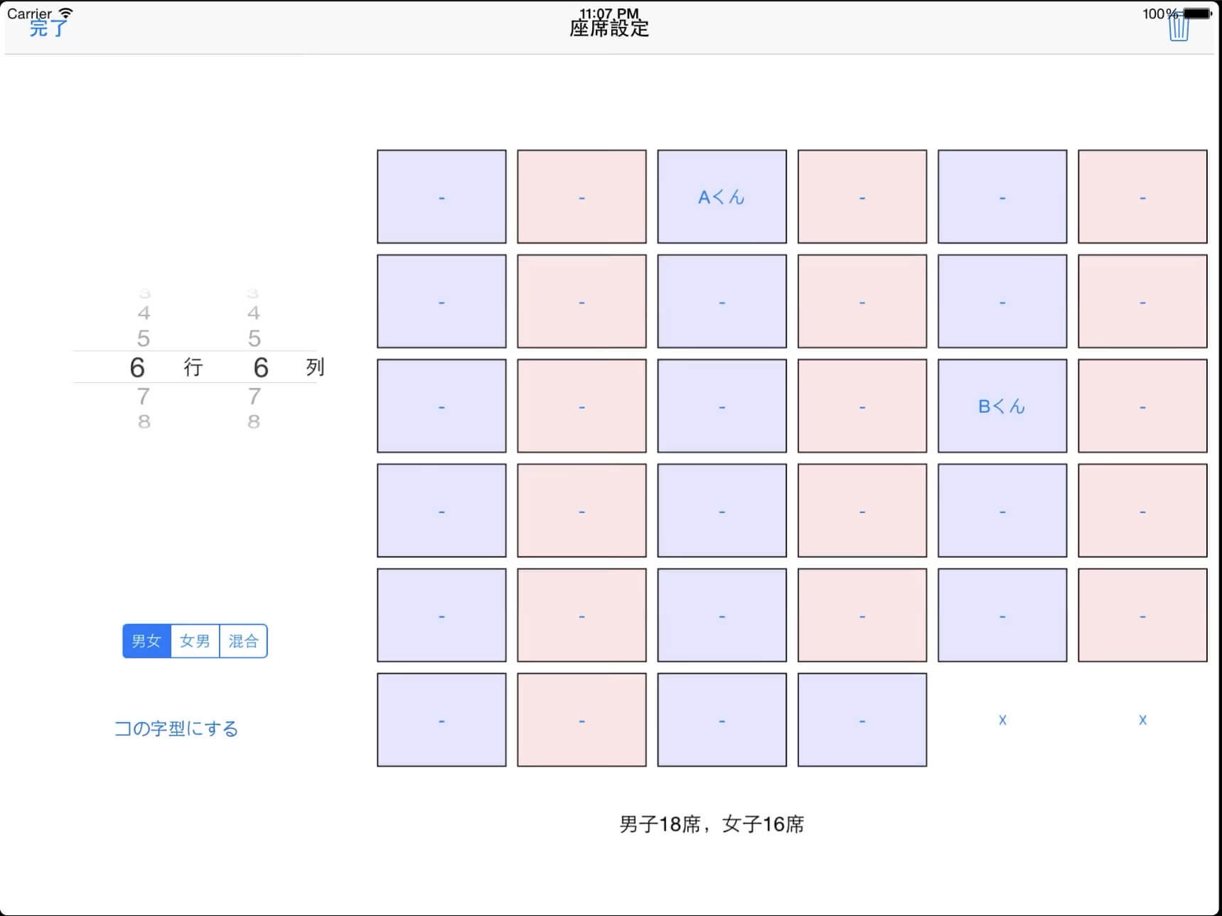 このアプリでは、生徒を登録しておくことで簡単に席替えを行うことができます。