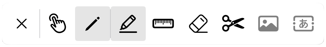 直線を入力したい場合は、ペンシルメニュー中央にある定規のイラストをタップしてください。