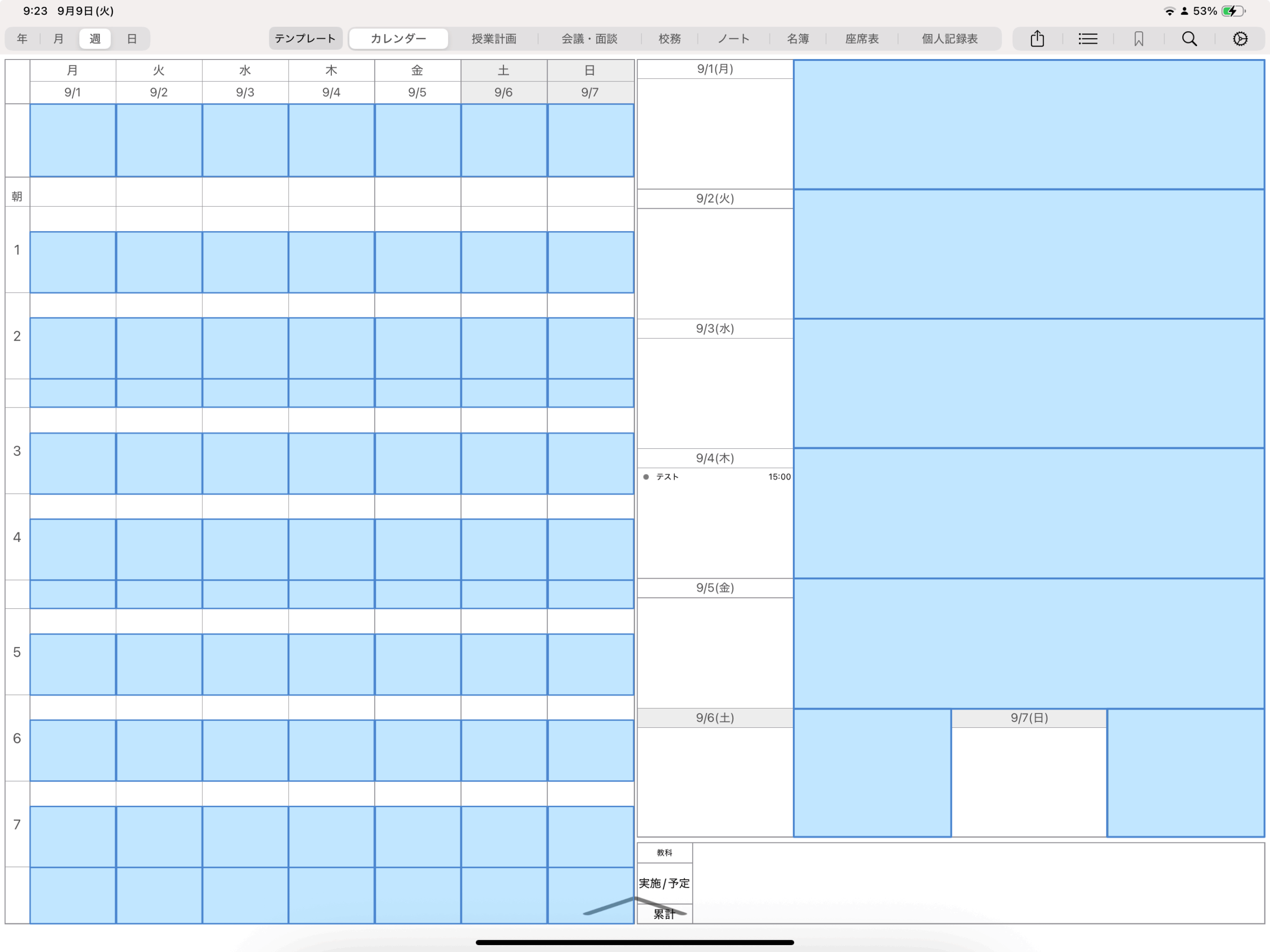 週ごとの予定時数については、自動で計算されますが手動でのご入力を推奨します。