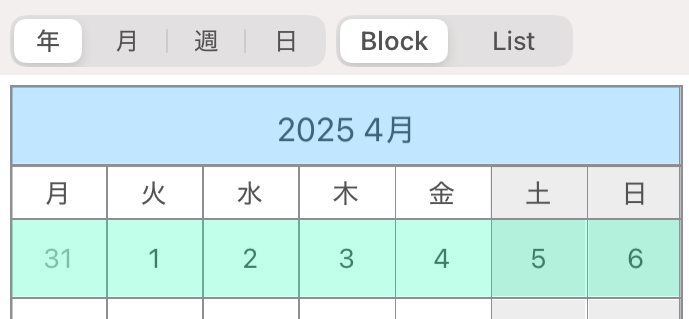 日間カレンダー